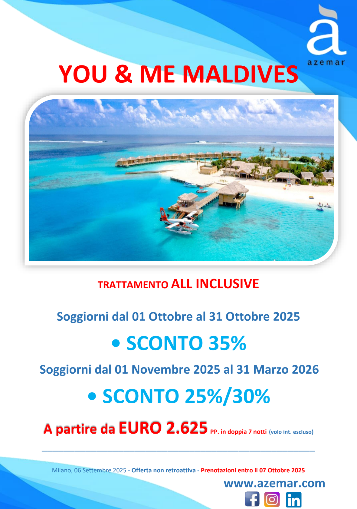 Isole incontaminate, lagune cristalline, resort di design e un lusso che coccola ogni dettaglio. Preparati a vivere le Maldive come hai sempre immaginato.