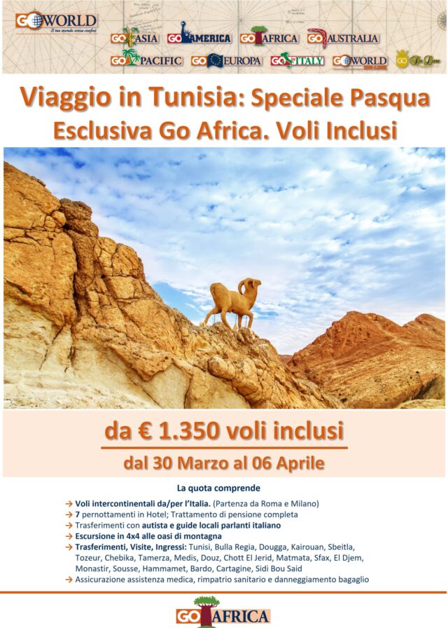 Il periodo pasquale è ideale per visitare la Tunisia: clima piacevole, temperature miti e luce perfetta per vivere appieno ogni tappa del viaggio.